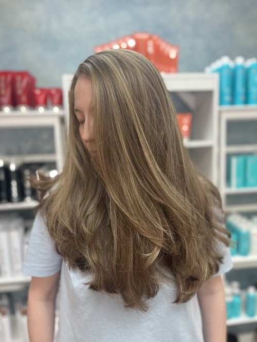 We are a luxury hair salon that offers professional hair services in a comfortably elegant environment. Our clients are always welcomed with complimentary beverages from our bar, a relaxing waiting area where we play soothing jazz, upbeat swing, or 70's by request! And stylists that always provide impeccable service.