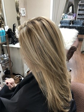 We are a luxury hair salon that offers professional hair services in a comfortably elegant environment. Our clients are always welcomed with complimentary beverages from our bar, a relaxing waiting area where we play soothing jazz, upbeat swing, or 70's by request! And stylists that always provide impeccable service.